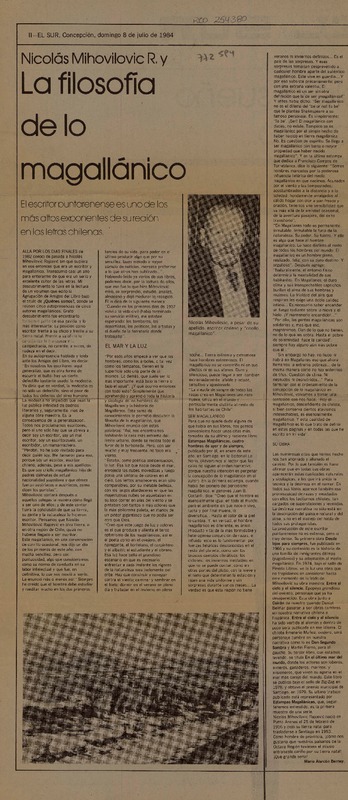 Mihovilovic: "cronista" de la vida magallánica : [entrevista] [artículo] Patricia Stambuk.