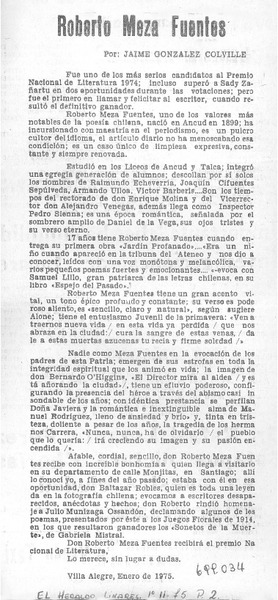 Roberto Meza Fuentes [artículo] Jaime González Colville.