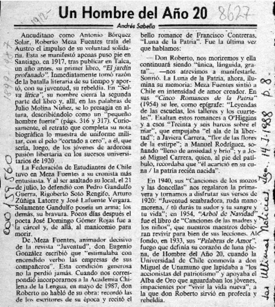 Un hombre del año 20 [artículo] Andrés Sabella.