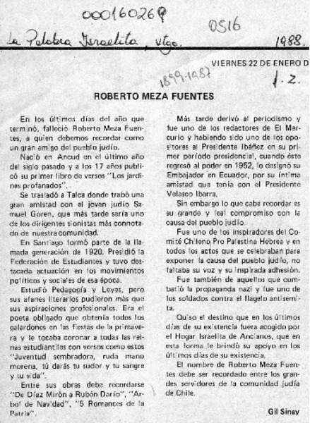 Roberto Meza Fuentes [artículo] Gil Sinay.