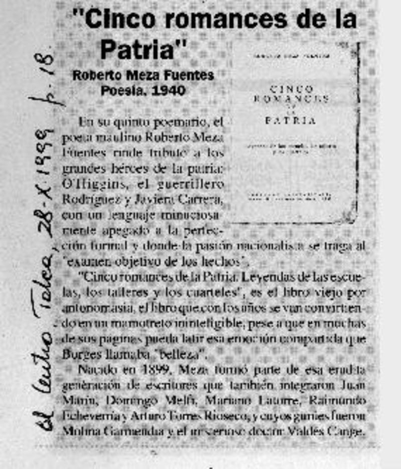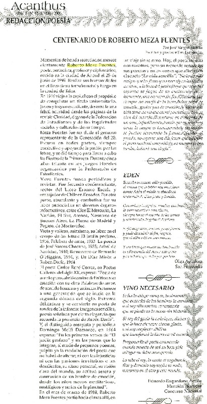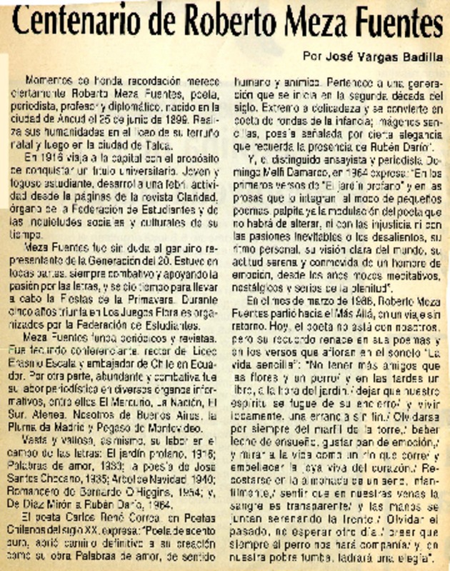 Centenario de Roberto Meza Fuentes [artículo] José Vargas Badilla