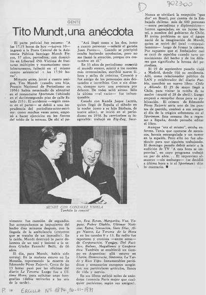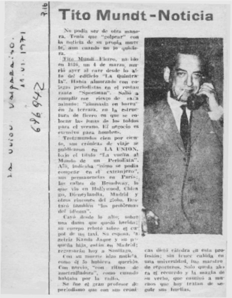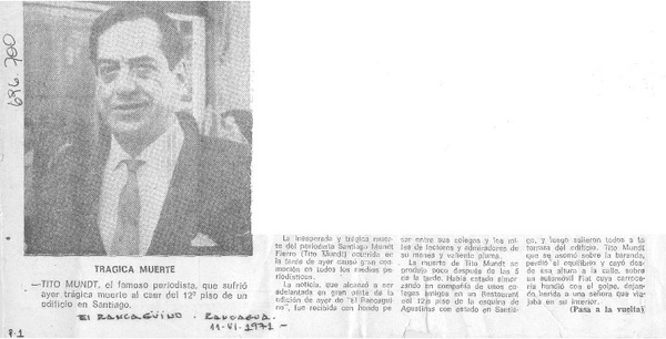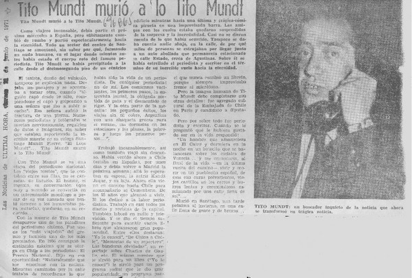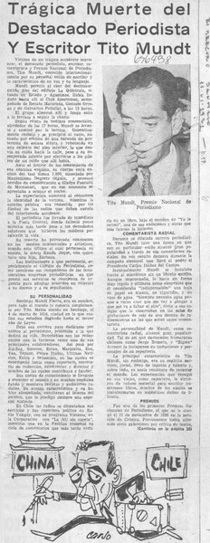 Trágica muerte del destacado periodista y escritor Tito Mundt. [artículo]
