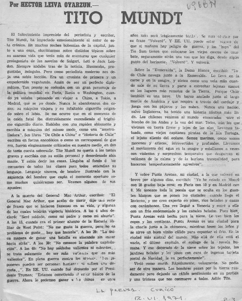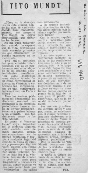 Tito Mundt, una noticia [artículo] Francisco Wilson U.