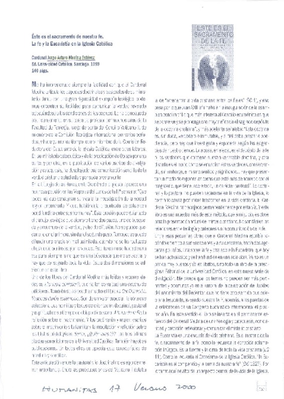 Éste es el sacramento de la fe [artículo] Andrés Arteaga Manieu