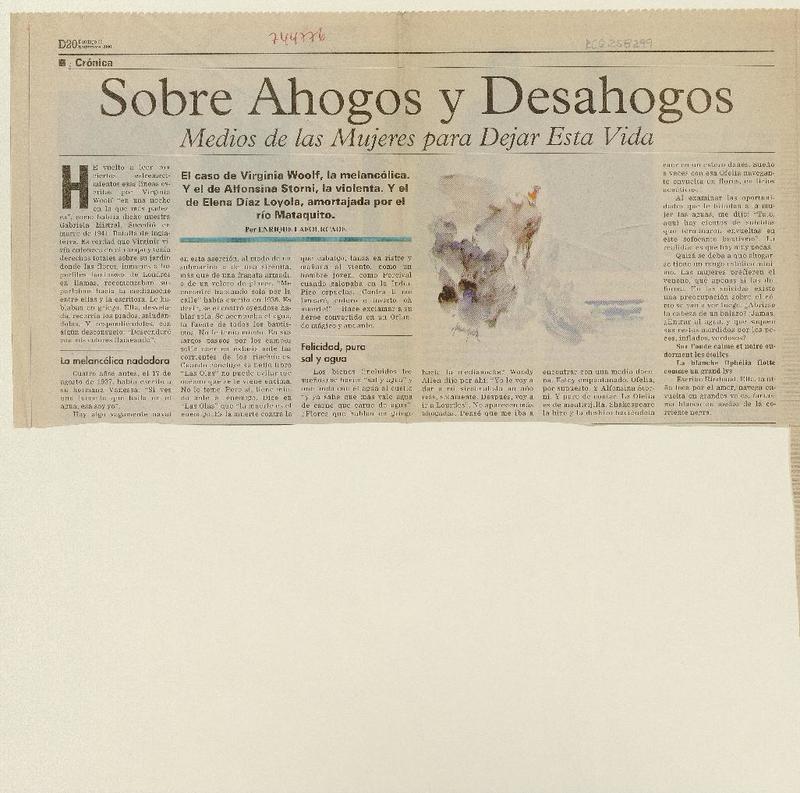 Sobre ahogos y desahogos medios de las mujeres para dejar esta vida [artículo] : Enrique Lafourcade.