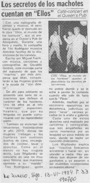 Juan La Rivera y "Ellas" espectáculo original y elegante progresos para ellas, buen debut para él [artículo] Yolanda Montecinos.