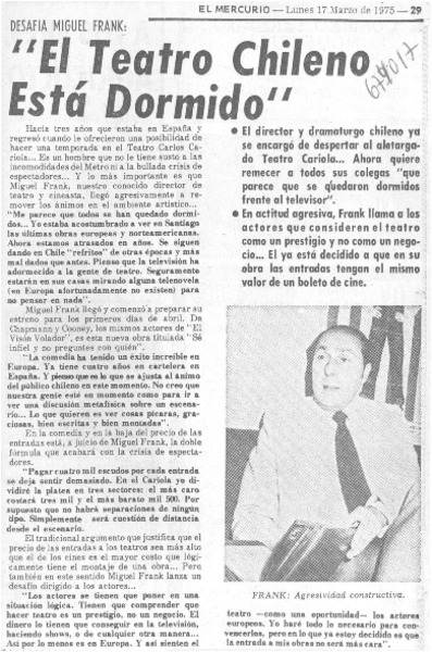 El teatro chileno está dormido". [artículo]