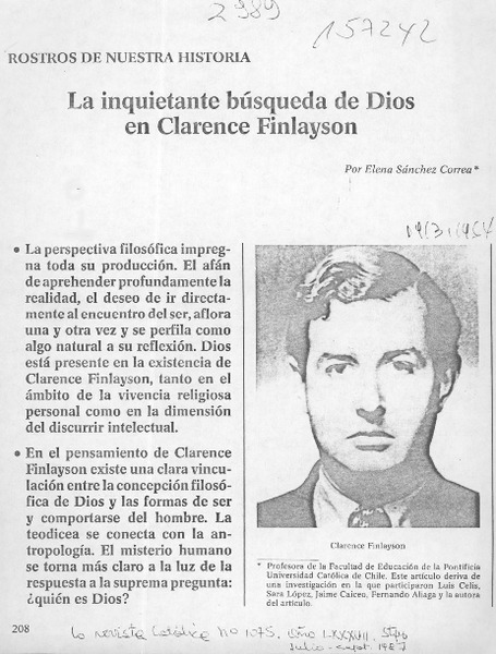 El Pensamiento metafísico de Clarence Finlayson [artículo] Manuel Atría R.