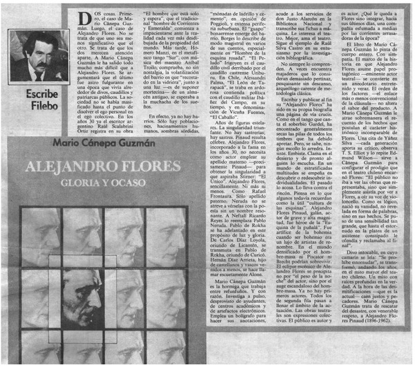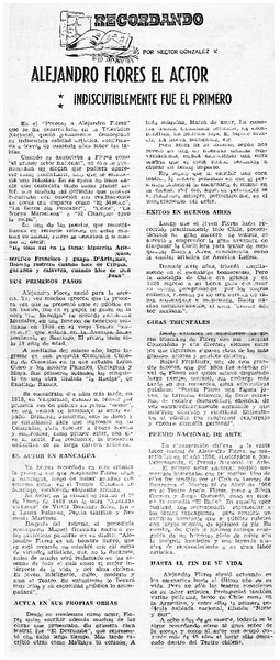 Alejandro Flores, un actor como jamás ha existido otro en Chile [artículo] Lucho Fuenzalida.