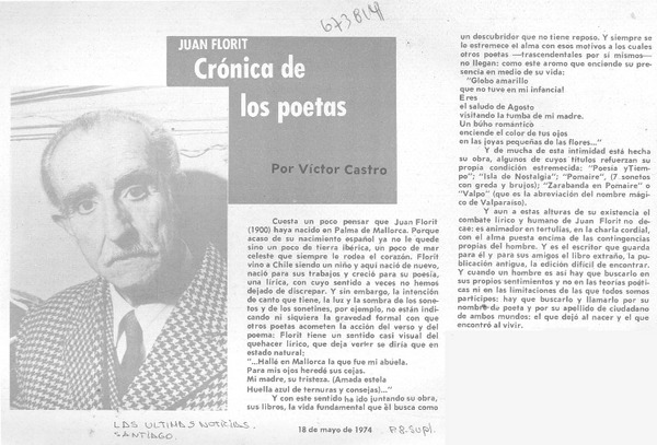 Autores chilenos - Florit, Juan - Poeta en el pueblo