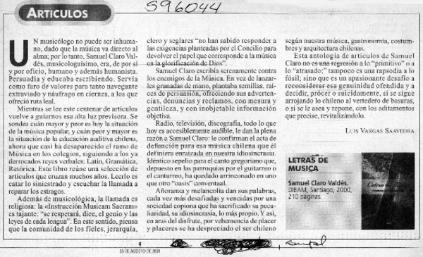 Letras de música [artículo] Luis Vargas Saavedra.