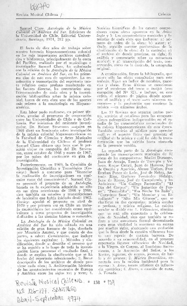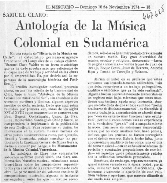 Samuel Claro: antología de la música colonial en sudamérica. [artículo]