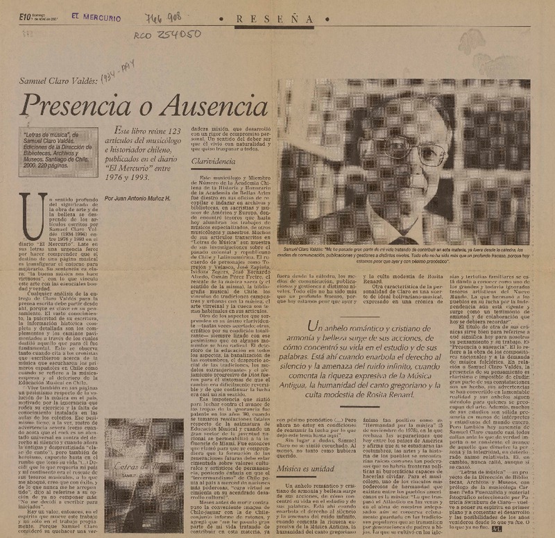 Presencia o ausencia [artículo] Juan Antonio Muñoz H.