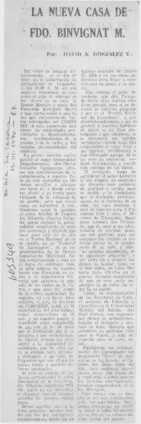La nueva casa de Fdo. Binvignat M. [artículo] David A. González V.