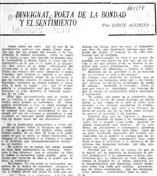 Binvignat, poeta de la bondad y el sentimiento [artículo] Jorge Agurto.