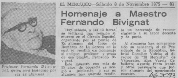 Homenaje a Fdo. Binvignat rendirán los liceanos. [artículo]