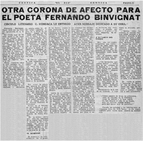 Otra corona de afecto para el poeta Fernando Binvignat. [artículo]