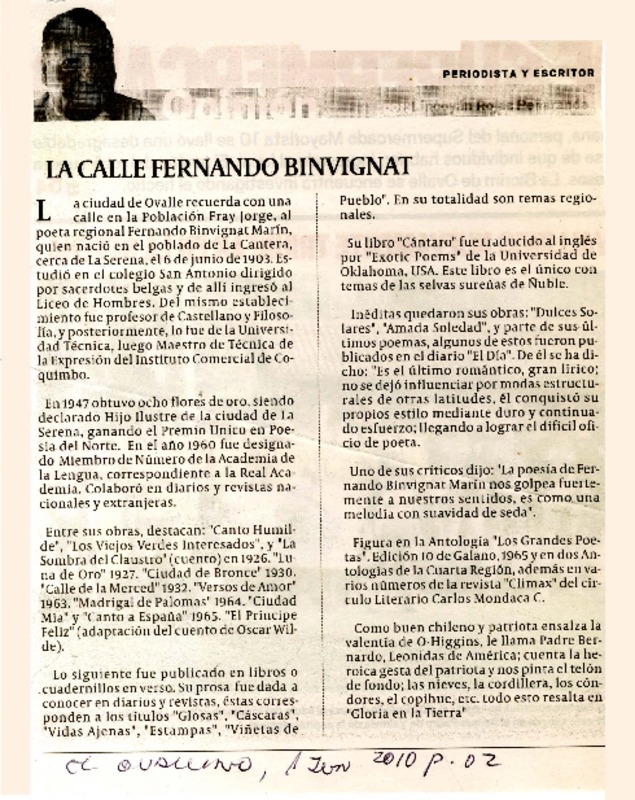 Fernando Binvignat (poeta coquimbano). [artículo]