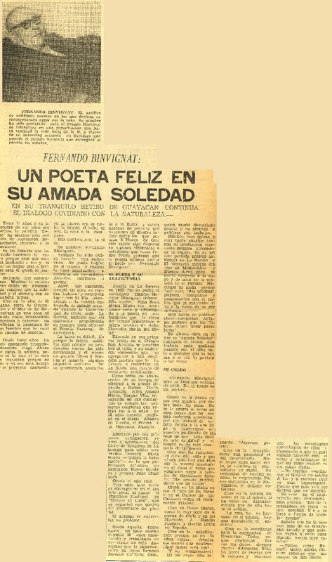 Recuerdan natalicio del poeta Fernando Binvignat. [artículo]