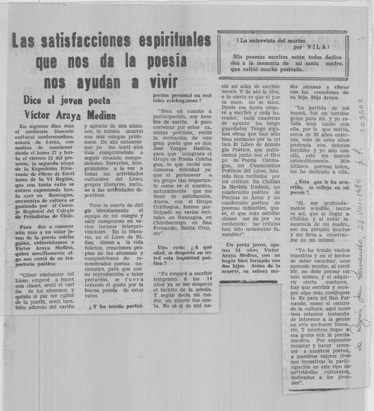 Autores chilenos - Millas, Ismael - Lautaro - entrevista - Aguirre, Isidora