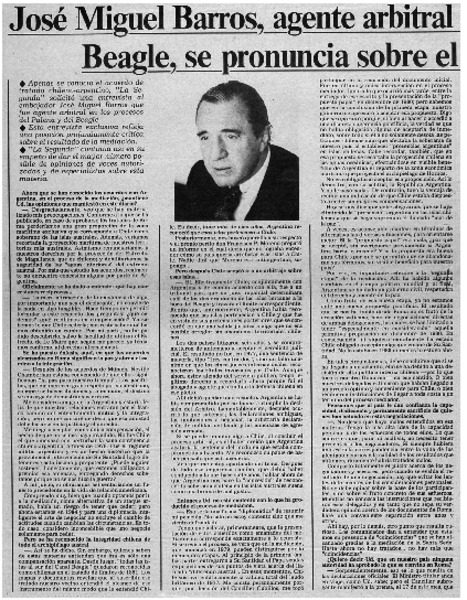 Sería un alocura buscar la paz con Argentina sin buscar la reconciliación dentro de Chile" : [entrevista] [artículo] E. S.