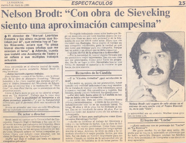 Teatro chileno necesita apoyo oficial y privado" : [entrevista] [artículo] Emilio Bakit.