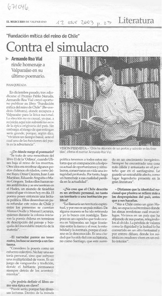 Contra el simulacro : [entrevista] [artículo] Iván Quezada.