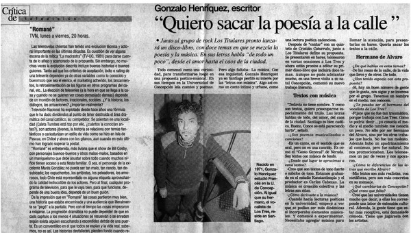 Autores chilenos - Pérez, Andrés - Chañarcillo - Entrevista