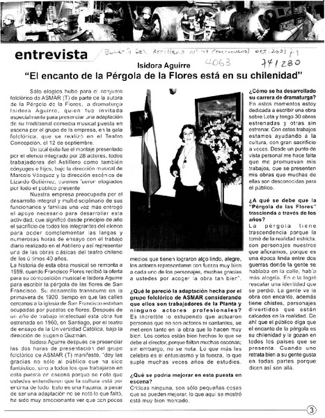Autoras chilenas - Aguirre, Isidora - Entrevista - Pérgola de la flores