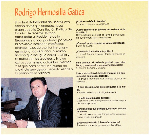 Autor de una novela de terror y protagonista de una historia de amor : [entrevistas] [artículo] Malú Sierra.