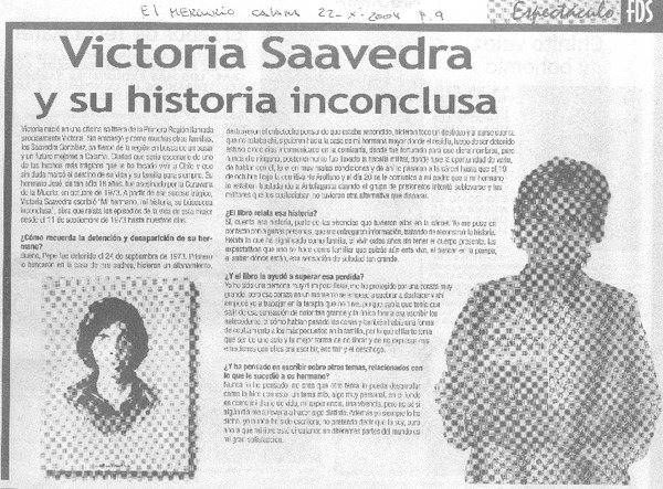 Victoria Saavedra y su historia inconclusa (entrevistas) [artículo]