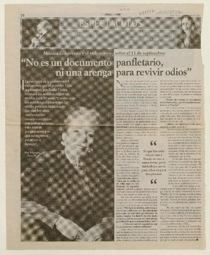 Un cuento para Santiago : [entrevistas] [artículo] María Teresa Cárdenas.