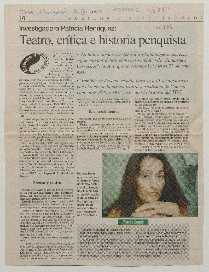 Ana María Stuven. "En Chile no nos gusta ver a los malos, a los feos, a los distintos" [artículo] Juan Luis Salinas