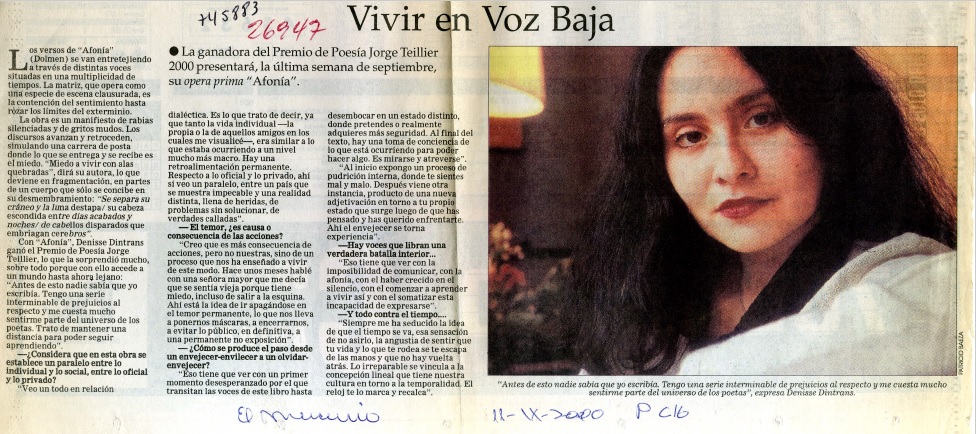 Autoras chilenas - Entrevista - Dintrans, Denisse