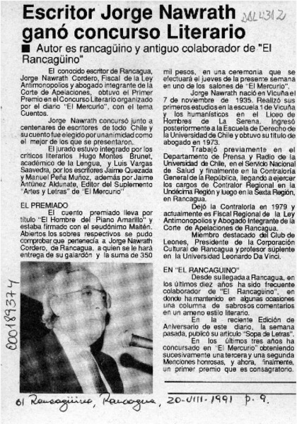 Escritor Jorge Nawrath ganó concurso literario [artículo].
