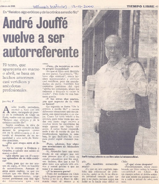 Casi una entrevista : hoy André Jouffé L. [artículo] por Jorge Abasolo Aravena.