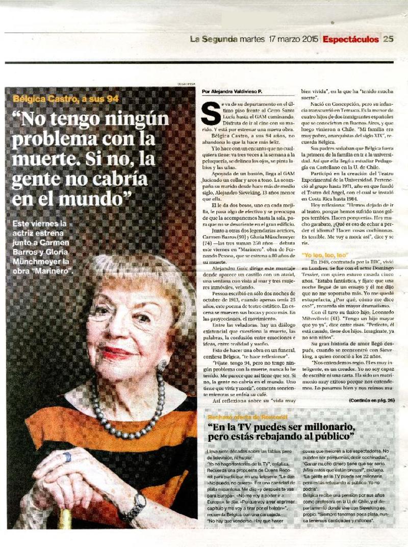 Bélgica Castro, a sus 94 "No tengo ningún problema con la muerte. Si no, la gente no cabría en el mundo [artículo] Alejandra Valdivieso P.