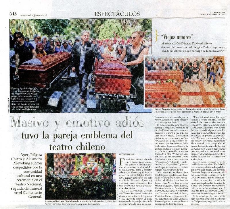 Masivo y emotivo adiós tuvo la pareja emblema del teatro chileno [artículo] Natalia Carrasco.