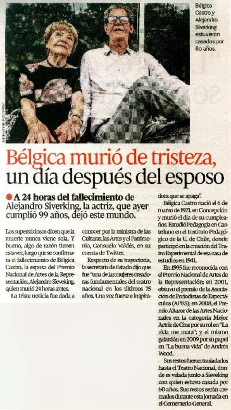 La actriz Bélgica Castro fallece 24 horas después de su pareja [artículo].