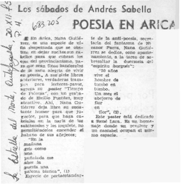 Poesía en Arica [artículo]Andrés Sabella.