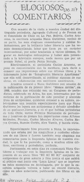 Nana Gutiérrez otra vez en actualidad literaria. [artículo]