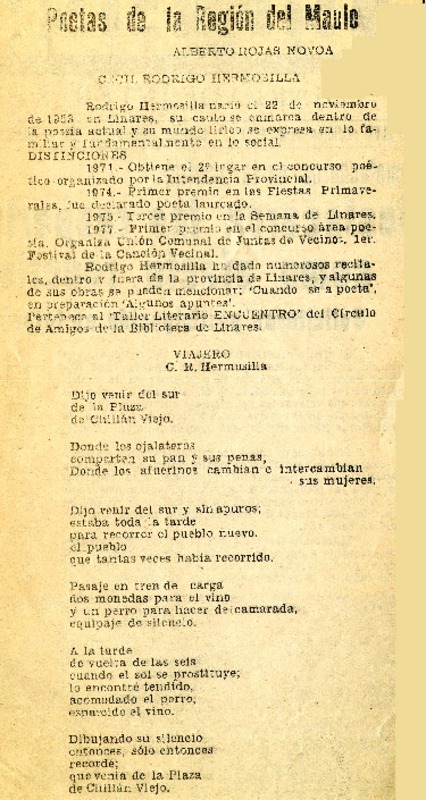 Cecil Rodrigo Hermosilla un poeta de Linares [artículo] Darío de la Fuente.