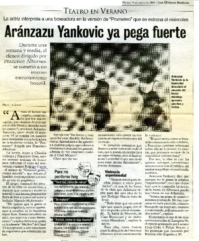 Aránzazu Yankovic ya pega fuerte [artículo] Marietta Santi.