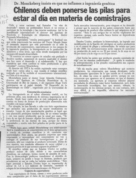 Muy "chicha fresca" se lanzó el doctor Monckeberg [artículo].