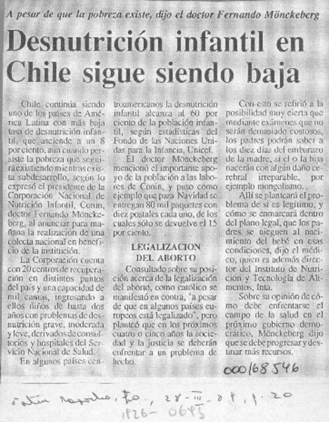 Monckeberg dice que el Estado debe velar por los desnutridos [artículo].
