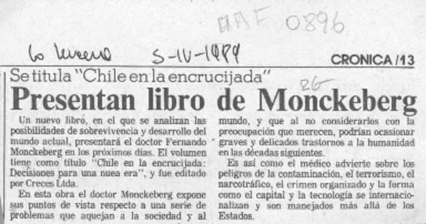 Autores chilenos - Entrevistas - Monckeberg, Fernando