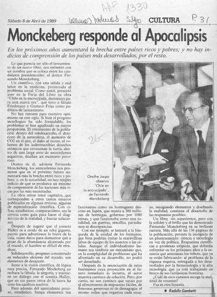 Monckeberg responde al apocalipsis [artículo] Rodolfo Gambetti.
