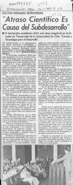 Doctor Fernando Monckeberg "atraso científico es causa del subdesarrollo" [artículo].