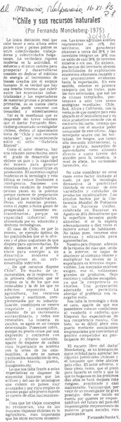 Chile y sus recursos naturales [artículo] Fernando Durán V.