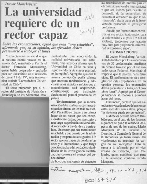 "Yo soy el indicado", asegura F. Monckeberg [artículo] A. Alvarez.